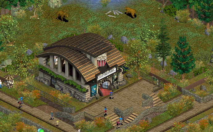 No more bear shows! This mod replaces the original animal theatre included in base Zoo Tycoon with an edited version of the Dinosaur Digs cinema. I always found the inclusion of live animal shows kind of bizarre for a game that puts a lot of emphasis on keeping animals well looked after and various other references to the negative human impact on different species, so this mod seeks to change that. In addition, the original lang file and tooltip mentions guests visiting the cinema to watch documentaries and other shows, which doesn’t match at all to the original visuals, so I think this one suits it better anyway.